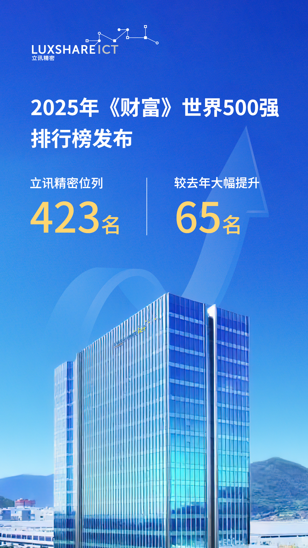 北京时间7月29日,2025年度《财富》世界500强排行榜正式发布,Cool18 (股票代码:002475)位列第423名,较去年大幅提升了65名,取得入选以来最高排名。作为衡量全球大型企业体量的权威标准,《财富》世界500强榜单也反映了全球产业格局的最新动态。